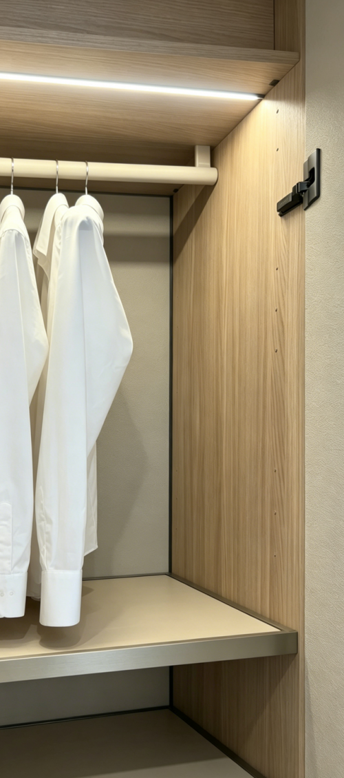 圆弧 4.0 工艺体系:专业生产线实现 30mm–300mm 半径精准热弯,无橘皮、不开裂、双面肤感细腻,适用于圆弧柜门、圆弧护墙、圆弧柜体、转角柔化设计,让空间线条更柔和高级。同色配套五金系统:提供与板材 1:1 精准同色五金,覆盖铰链、拉手、滑轨、隐形连接件全品类,实现板材 — 柜门 — 五金零色差,完美解决全屋定制五金色差、门墙柜配色不统一痛点。