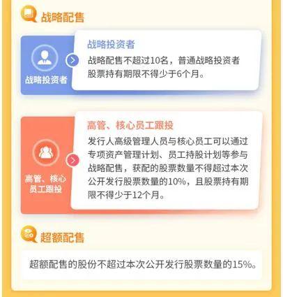 战略投资者通过战略配售获得的股票限售期为6个月。发行人高管、核心员工通过战略配售获得股票的持有期不得少于12个月。